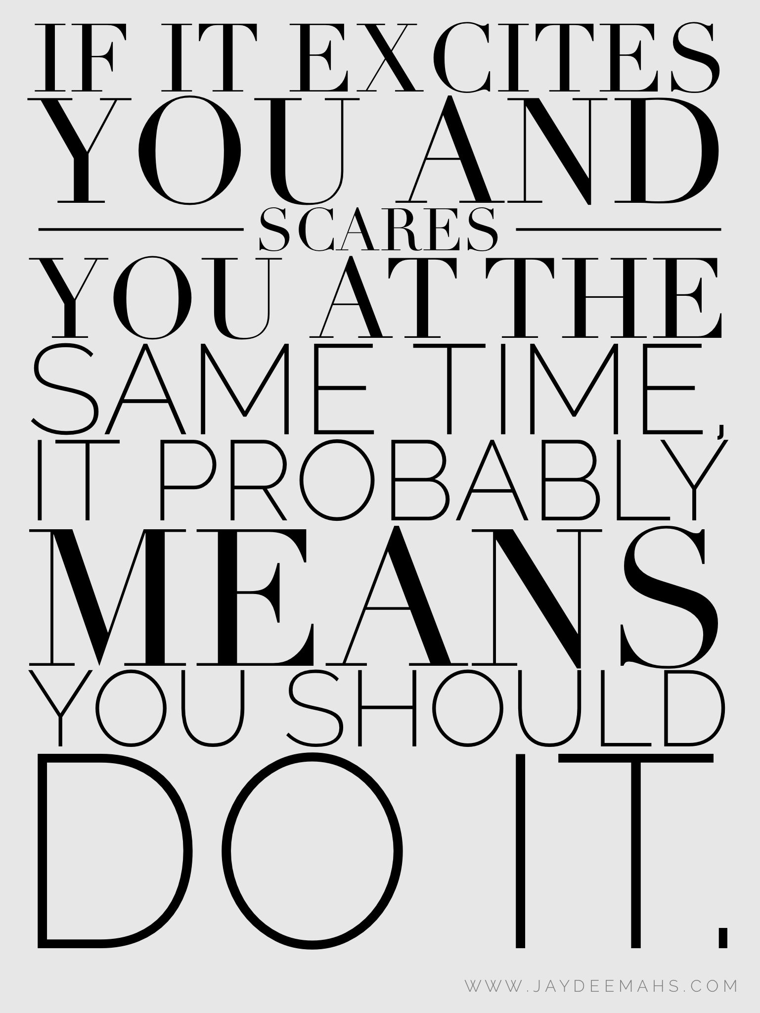 If you want to conquer fear dont sit home and think about it. Hes like me just with different details. If it excites you and scares you at the same time it probably means you should do it A simple quote that often pops up in my Pinterest feed that I always read but never pay much attention to until today.